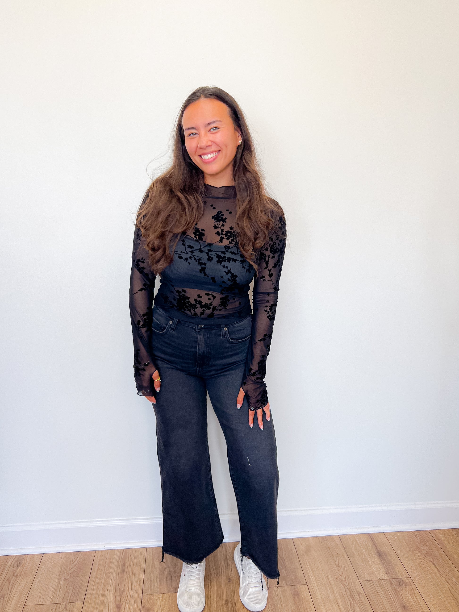 Black floral mesh top