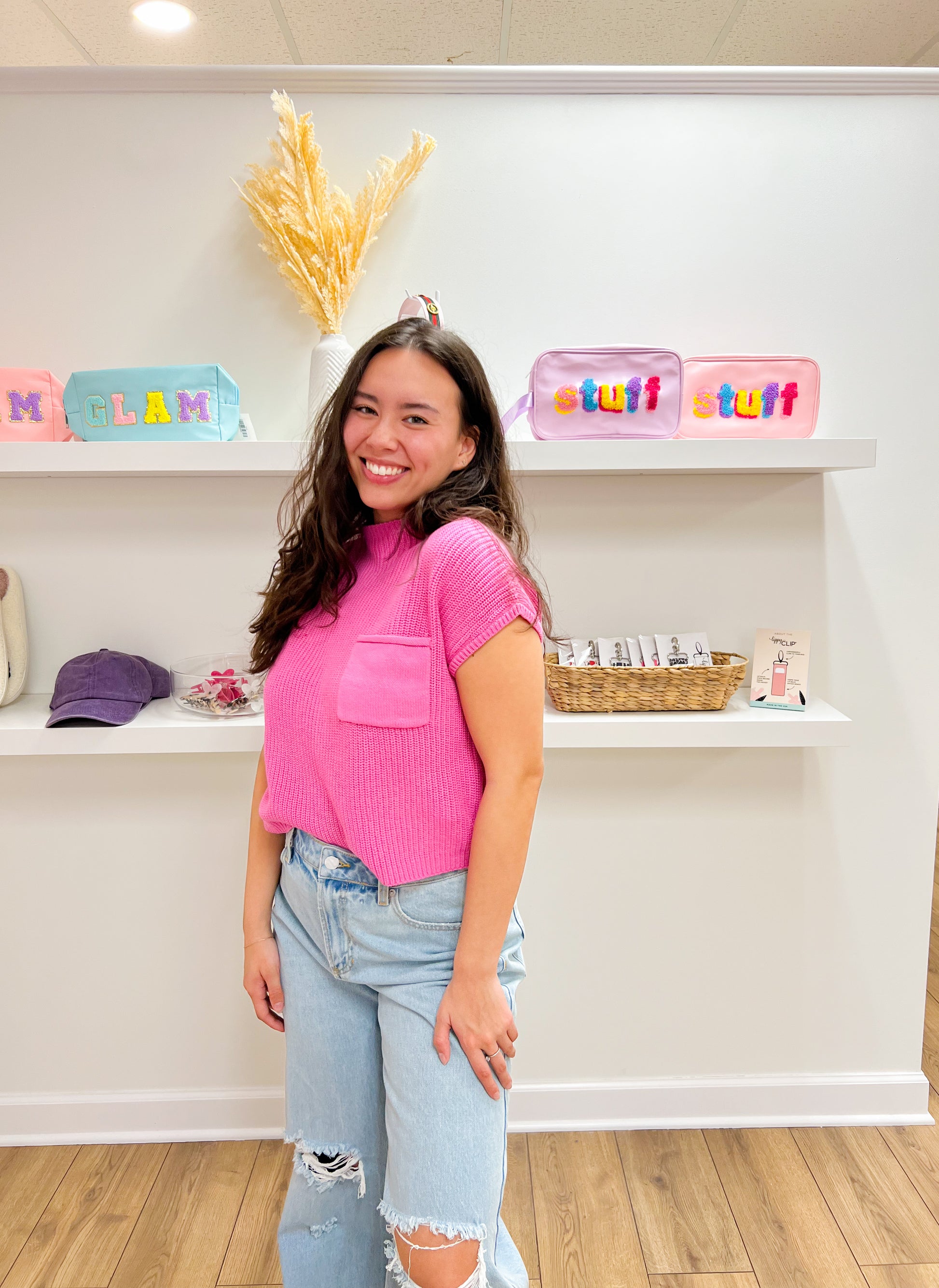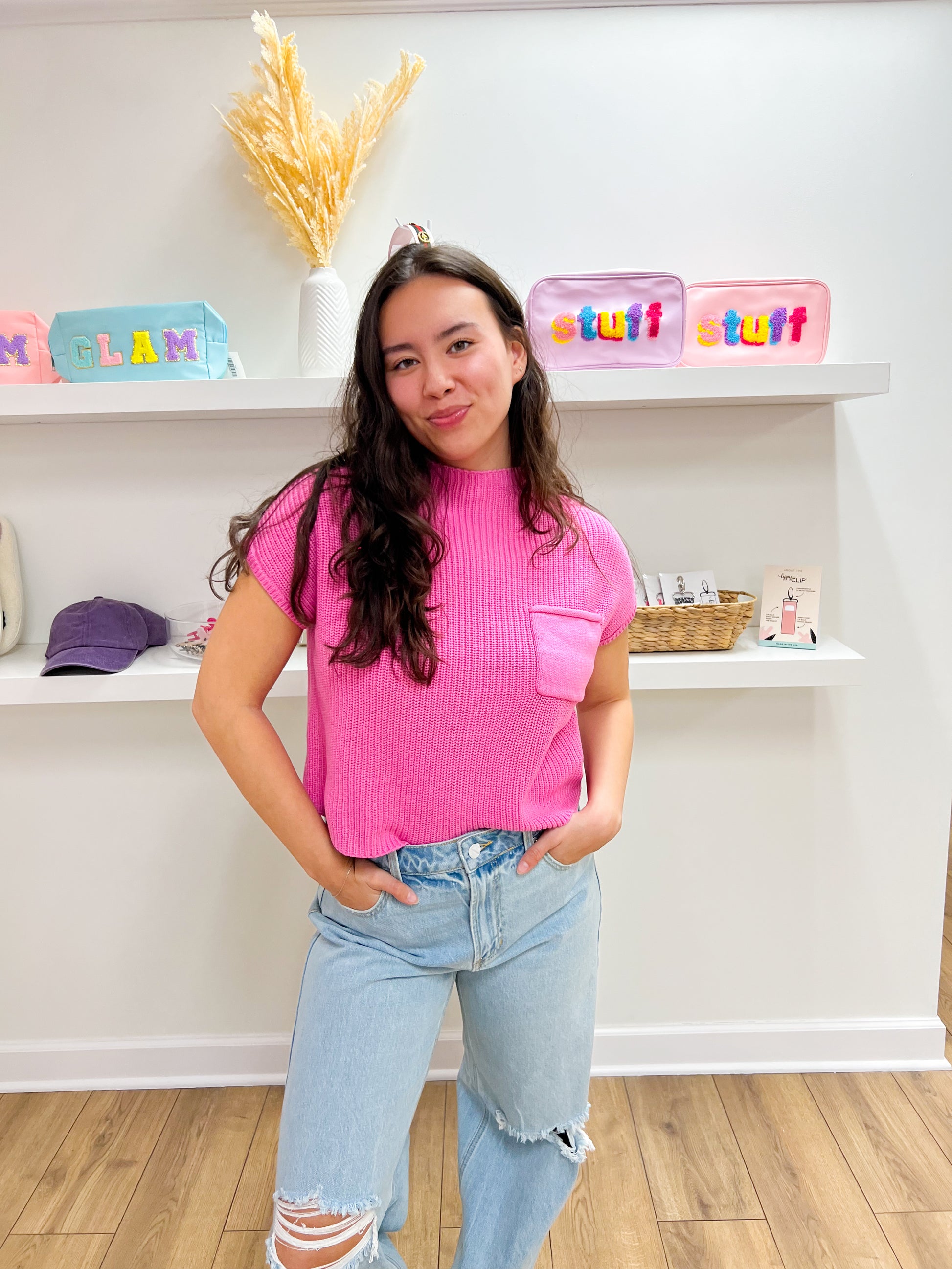 Short Sleeve Sweater Mock Neck Top